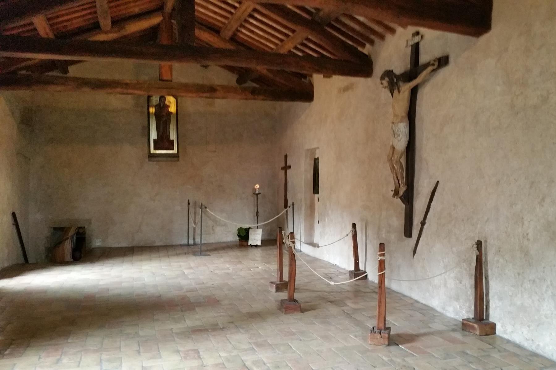 Franziskus bringt Klara zunächst in das Benediktinerinnenkloster San Paolo bei Bastia (nach unten scrollen) ca. 4 KM von der Portiuncula Kapelle entfernt. Dort bleibt sie einige Wochen. Als ihre Familie erfährt, dass Klara in San Paolo bei Bastia ist, versuchen sie sie zurückzuholen. Sie soll sich am Altartuch der Kirche festgehalten haben, andere sagen an einer Säule.